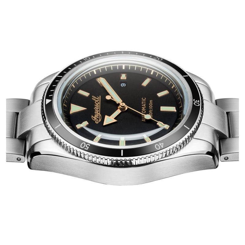 Die Ingersoll DISCOVERY - I05005 The Scovill - ist eine Herrenuhr mit Automatikwerk und zeichnet sich durch folgende Funktionen aus - Stunden, Minuten, Sekunden, Datum. Das Ziffernblatt ist Schwarz. Die Gehäuseform ist rund. Das Gehäuse ist aus Edelstahl und es ist matt. Die Abmessung des Gehäuses sind Höhe 43 mm, Breite 43 mm und Tiefe 15 mm. Die Ingersoll DISCOVERY - I05005 ist wasserdicht bis 100m. Das Uhrband der I05005 The Scovill ist ein Metallarmband. Die Farbe des Bandes ist Silber. Das Material des Uhrbandes der Ingersoll DISCOVERY - I05005 The Scovill - ist aus Edelstahl. Die Ausführung des Uhrbandes ist matt. Die Länge des Uhrband beträgt26,5mm. Die Breite des Uhrbandes beträgt 20mm. Der Uhrbandverschluss ist eine Entfaltungsschnalle. Das Gewicht der Ingersoll DISCOVERY - I05005 The Scovill - beträgt 180 Gramm. Das Glas der - The Scovill - ist Mineral Glas. Weiters hat die Ingersoll DISCOVERY - I05005 The Scovill - folgende Sonderfunktionen Datum auf 3 Uhr. Die Garantie ist Lebenslang.